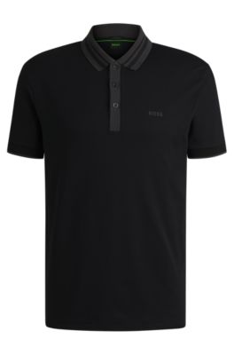 - ゴルフ > メンズウェア > BOSELLI LIGHT STRETCH COLLAR ¥22000 BOSS - Interlock-cotton polo shirt with striped collar - Black