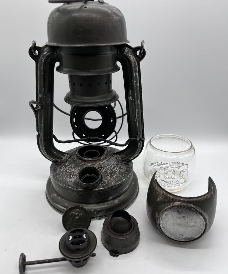 | 商品の特徴 | 極上ヤレ感 FEUERHAND 176e Pilz gloss vintage 極上ヤレ感 FEUERHAND。極上ヤレ感 FEUERHAND 176e Pilz gloss vintage 極上ヤレ感 FEUERHAND。極上ヤレ感 FEUERHAND 176e Pilz gloss vintage 極上ヤレ感 FEUERHAND。【 商品 】極上ヤレ感 FEUERHAND 176e Pilz gloss vintage Jena glass【 説明 】1930年代後半~1940年代前半に製作されたランタンです。極上ヤレ感 FEUERHAND 176e Pilz gloss vintage。約80年前のビンテージです。。外装は素地にグロス仕様です。ライト・ランタン GENTOS GH-203RG。タンク底に補修跡ありです。WINDY AND RAINY bonbonero 八ヶ岳 ボンボネロ。タンク内はシーラー、外装からもしっかりと補修されております。ライト・ランタン DEVISE WORKS Burn Freely 38-kT MIYABI。◆ビンテージ JENA グローブ◆バーナー、芯送り問題ありません◆大きな凹みなく無骨なヤレ感があるうえにグロス仕様で今後サビることなく長期間お使いいただける大変おすすめな個体です。ライト・ランタン ACEBEAM Terminator M2 Nichia 519A 5000K。◆タンク底オイル漏れありません。LEDLENSER レッドレンザーP7R CORE。 | ||